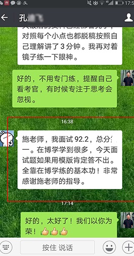 周老師善于因材施教,在大量的教學實踐中不斷總結(jié),創(chuàng)新面試培訓“擊碎重塑法”7天快速提高體系,注重強化學員的自我認知和對社會現(xiàn)實的認知,從內(nèi)心深處改變學員面試心態(tài),重塑思維方式。他針對學員的不同性格特點和層次基礎,設計不同的訓練和評價方式,循序漸進、諄諄善誘,從根本上解決“說不出、說不對、說不好”的普遍問題,使不少學員實現(xiàn)了從“難以啟齒”到“口若懸河”的轉(zhuǎn)變,被學員稱為“疑難雜癥專家”,備受推崇。 |