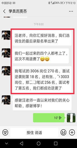 面試上岸有保障(指最終報考單位錄?。?。 歷年來,事業(yè)單位面試培訓班上岸率有保障,均有據(jù)可查。博學面試課程體系無論是課程的深度、廣度、實戰(zhàn)性還是歷屆學員口碑和美譽度都遠高于其他同類輔導機構(gòu)。面試狀元、最后一名反超成功的比比皆是。 |